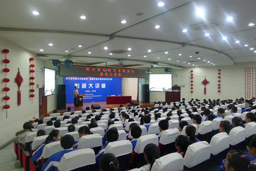 随后,讲座在华西中学多媒体教室正式进行。陈岳以国学衰微的原因为切口,为师生们深刻剖析了学习国学的意义与重要性。他谈到,社会、科技的进步激起了中国人对重学中国传统文化的激情,大力提倡加强国学教育的呼声越来越多。近几年来,语文教育备受重视,国学在中考、高考中所占比重越来越大。这也充分说明国家对传承传统文化的高度重视。