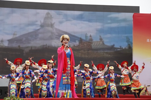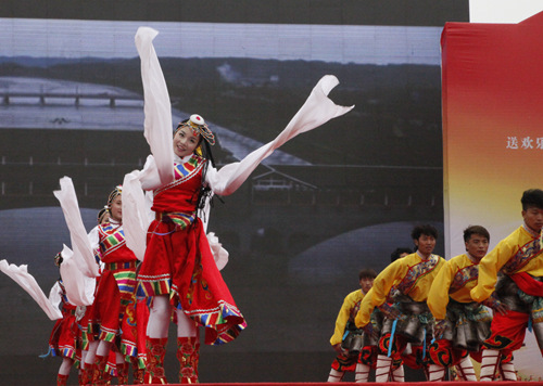 北川民族艺术团压轴舞《羌藏感恩歌》为北川县城体育馆的演出画上圆满句号