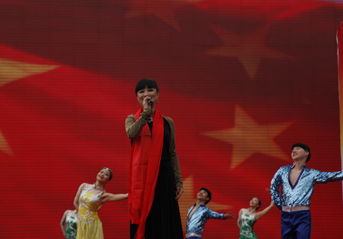 总政歌剧团女高音歌唱家李飞在现场为群众演唱