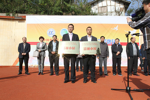 11月11日下午,“影视小屋”授牌仪式在巴中市通江县沙溪小学举行。 授牌仪式由巴中市副市长袁闻聪主持。授牌仪式上,赵化勇主席、陈华主席向巴中市通江县沙溪小学和平昌县信义中心小学授予了“影视小屋”牌匾,并赠送了十几台高清摄像机,大量电视作品光碟和电视艺术书籍。