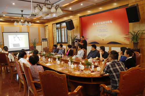 在专业定义中,编剧是指通过文字创作出剧本的作者,其往往是电影、电视剧的灵感泉源,是整个故事的核心与灵魂。在新媒体迅猛发展的当今社会,我国电视剧创作仍然面临着严峻的挑战。为了加大对我省优秀电视艺术人才的扶持、培养力度,鼓励四川本土的广大编剧不断提升自我,积极投身创作,以期推出更有艺术价值,更受人民群众喜爱的电视作品,繁荣我省的电视艺术创作,2015年6月24日,由四川省电视艺术家协会主办,成都市广播电视台和成都市电视电影家协会承办的“优秀青年编剧苏晓苑作品研讨会”在成都杜甫草堂成功举办。