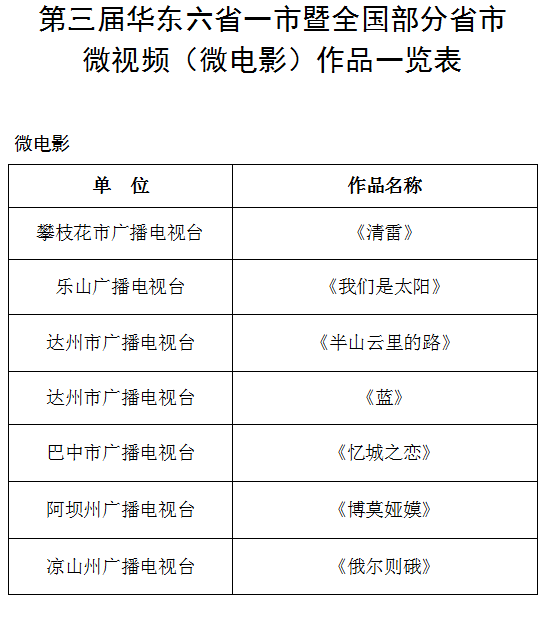 为了发掘和培养优秀创作人才,给广大影视爱好者提供一个展示自己作品的平台,开阔视野,彰显四川独特的文化魅力。四川省视协积极与兄弟省市展开交流合作,组织各市州广播电视台、各团体会员单位及个人,参加第三届华东六省一市暨全国部分省市微视频(微电影)作品大赛。