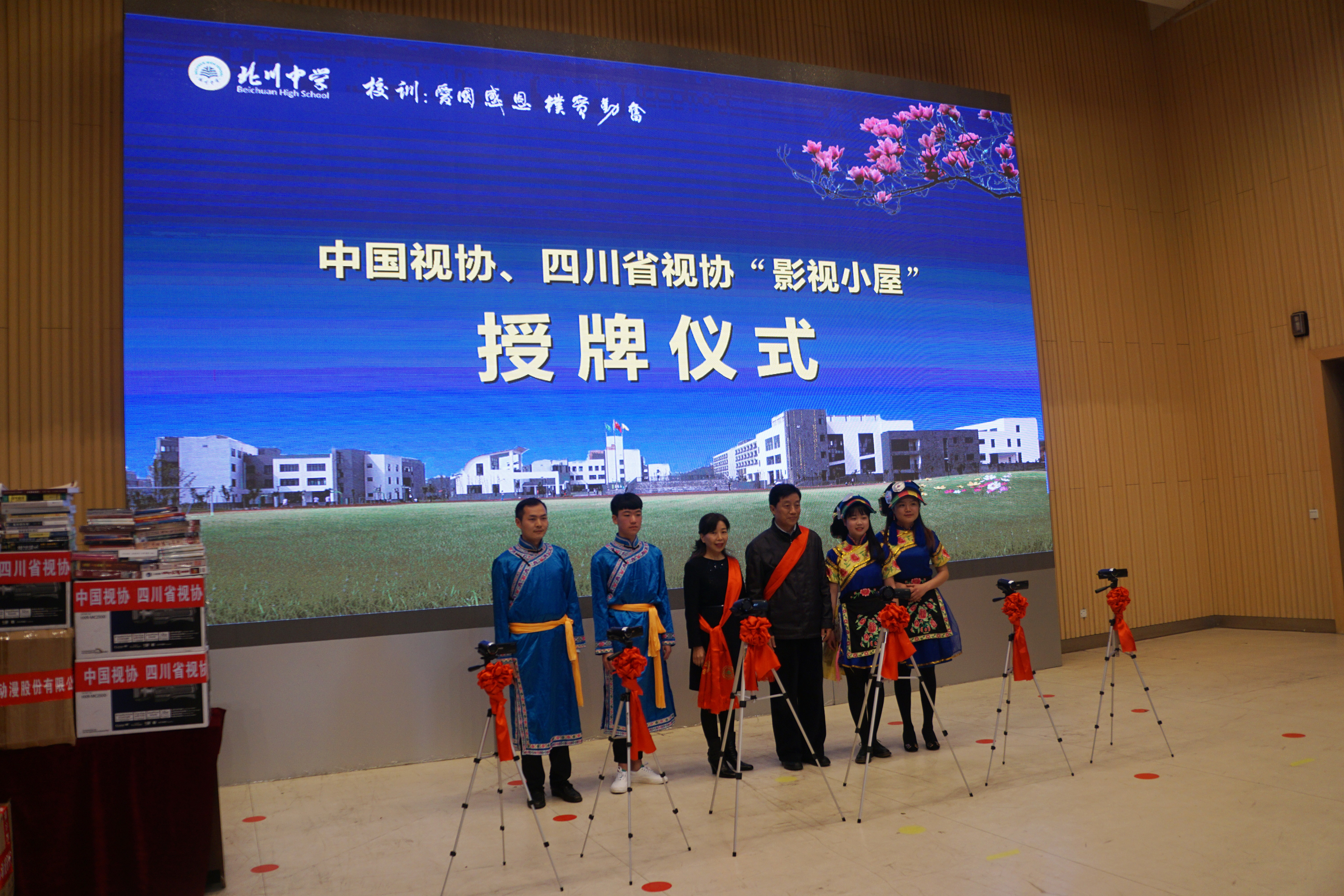 授牌仪式上,中国文联副主席、中国视协主席赵化勇和四川省视协理事、绵阳广播电视台党委书记、台长赵黎共同为北川中学“影视小屋”授牌,并向北川中学“影视小屋”赠送了六台高清专业摄像机及近百部电视艺术启蒙书籍、影像资料。四川省视协动漫专委会主任、成都恒风动漫有限公司总经理熊军懿还向北川中学“影视小屋”赠送了一百套学习生活用品。
