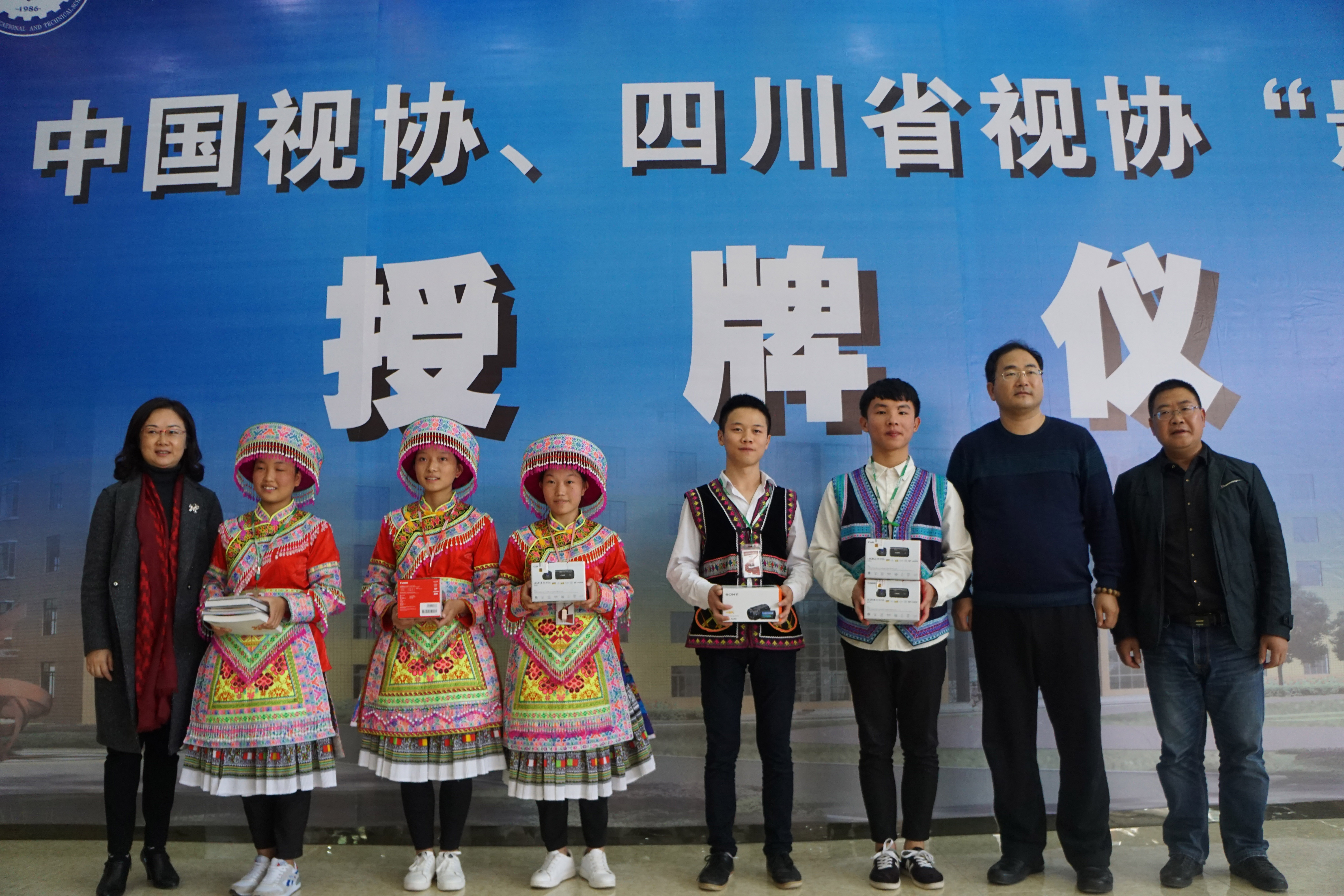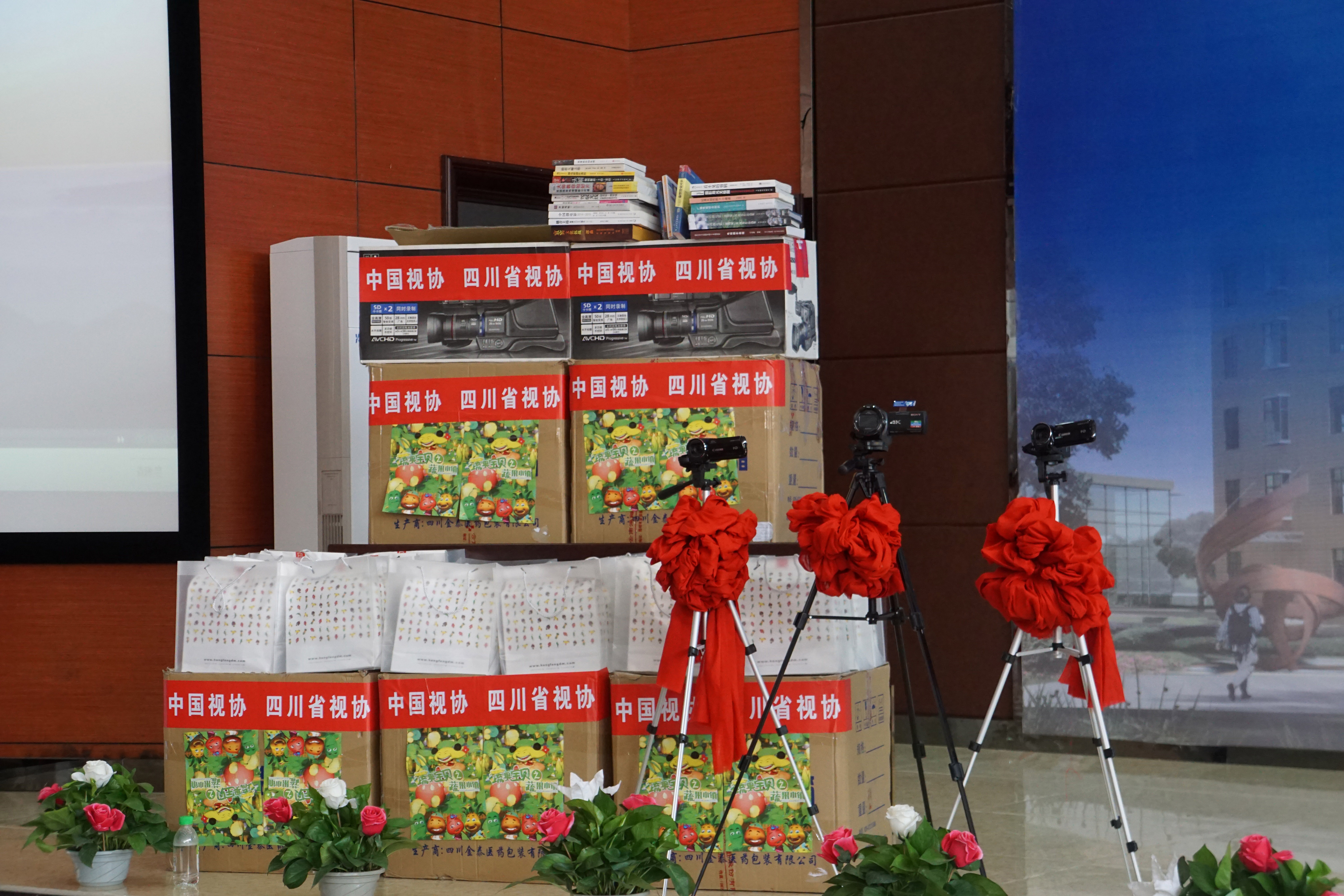 向筠连县职业技术学校“影视小屋”赠送摄影器材、电视艺术启蒙书籍、电视作品光碟和学习生活用品