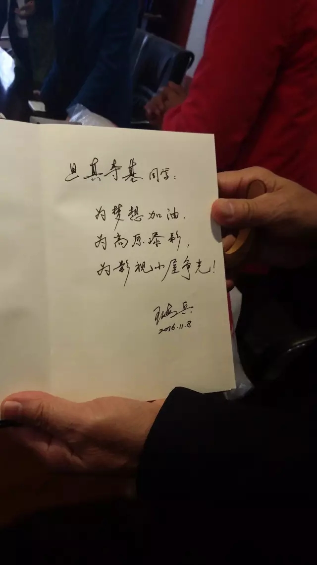 王海兵老师还为旦真夺基写下了一段寄语:“为梦想加油,为高原添彩,为‘影视小屋’争光”。