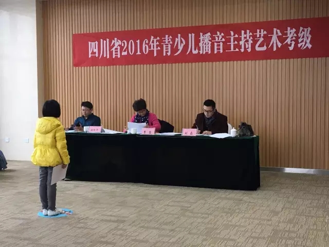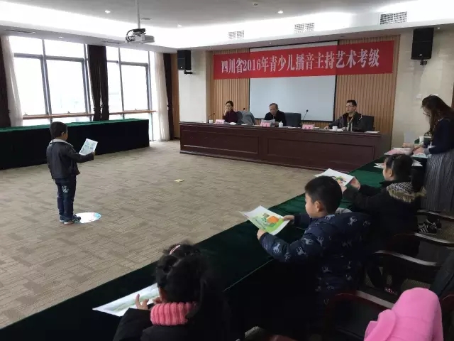 12月24—25日,四川省2016青少儿播音主持艺术考级分别在成都市刘诗昆艺术学校、德阳广播电视台新闻发布厅、内江市少年宫举行。来自成都、德阳、内江三个考区的530多名考生参加了本场考级测评。