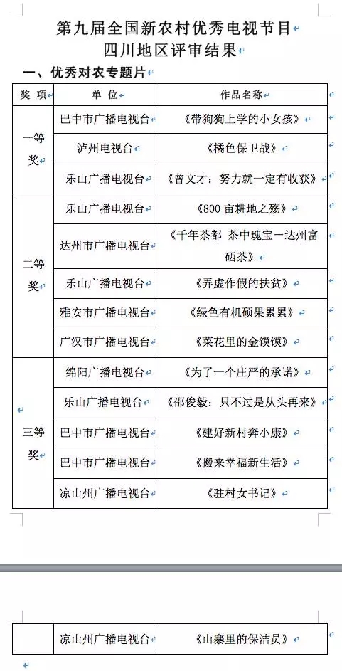 本次四川地区评选出的一等奖、二等奖共计18件作品将由省视协统一报送中国视协,参加第九届全国新农村电视艺术节的评选活动。