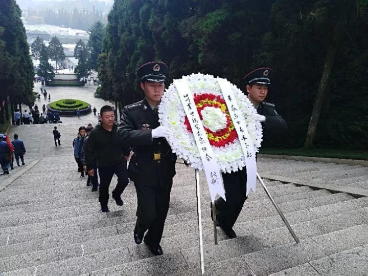 一行人代表四川电视艺术工作者向革命烈士敬献花圈
