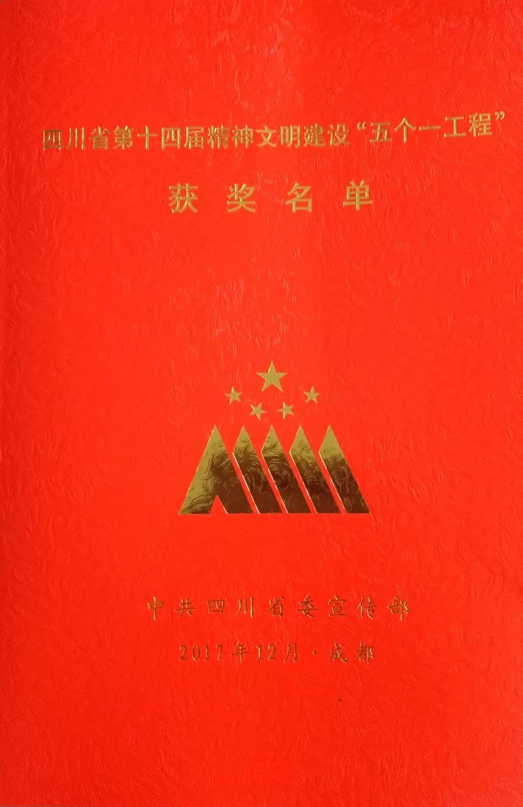 2017年12月25日,中共四川省委宣传部在成都隆重颁发四川省第十四届精神文明建设“五个一工程”(2014—2017)获奖作品奖,四川广播电视台、四川省文联推荐的作品《纪录四川100双手》荣获优秀作品奖,这是该作品继荣获国家新闻出版广电总局优秀国产纪录片、第23届中国纪录片学术盛典电视系列片“十佳”作品之后又获得的一项大奖,也是该作品迄今为止荣获的第15个国家级、中央级、省级奖项。