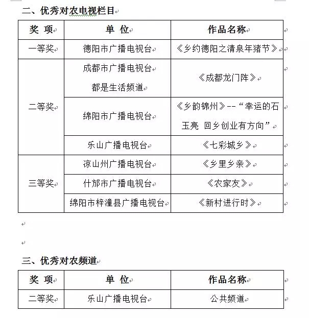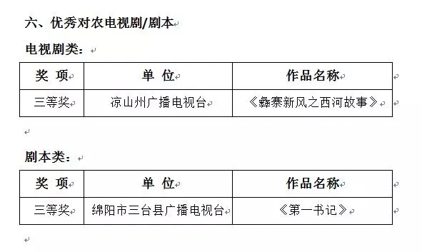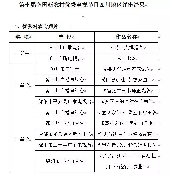 本次四川地区评选出的一等奖、二等奖作品将由省视协统一报送中国视协,参加第十届全国新农村优秀电视的评选活动。