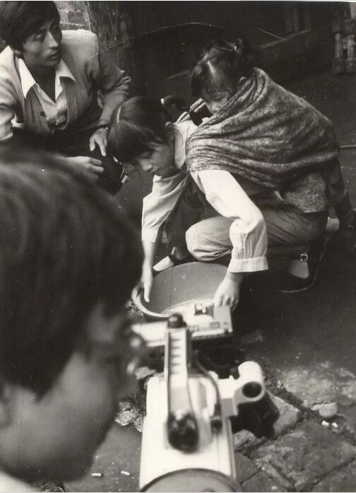 自贡电视台在重庆嘉陵江边拍摄电视剧《呼唤太阳》工作照。