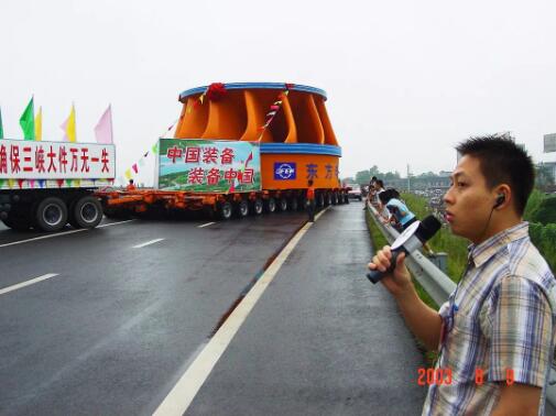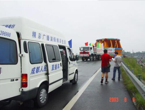 2003年8月9日超大型水电设备由德阳经成都市区运往乐山再由水路出川,整个运输途中成都市广播电视台进行了现场移动跟踪报道。