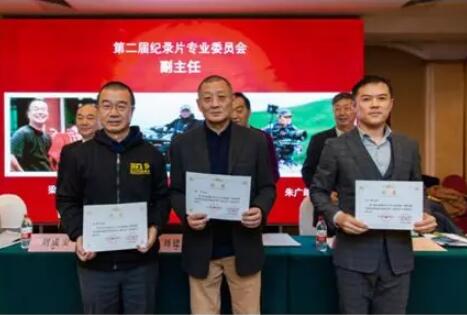 第二届纪录片专委会副主任梁碧波、凌中、朱广皓上台接受聘书。