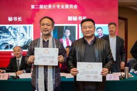 第二届纪录片专委会副秘书长冉茂全、王永刚上台接受聘书。