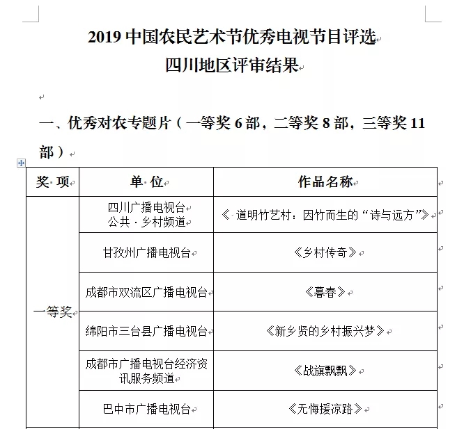 本次四川地区评选出的优秀作品将由省视协统一报送中国视协,参加2019中国农民艺术节优秀电视节目评选活动。