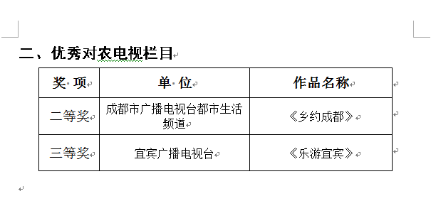 四川省视协会同各级主管部门领导、业内专家学者组成了专业评审委员会。本着“公平、公开、公正”的原则,严格把关,认真评审,以“思想性”、“艺术性”、“观赏性”三性统一作为总体评判标准,从作品的策划立意、主题思想、切入角度、后期制作等方面逐一进行考评,最终评选出“优秀对农专题片”25件,“优秀对农电视栏目”2件,“美丽乡村”6件,“优秀农村题材曲艺、小品”4件。