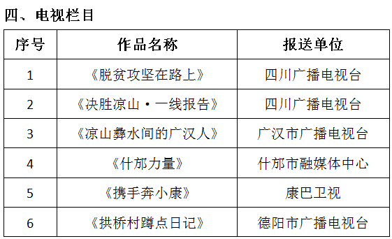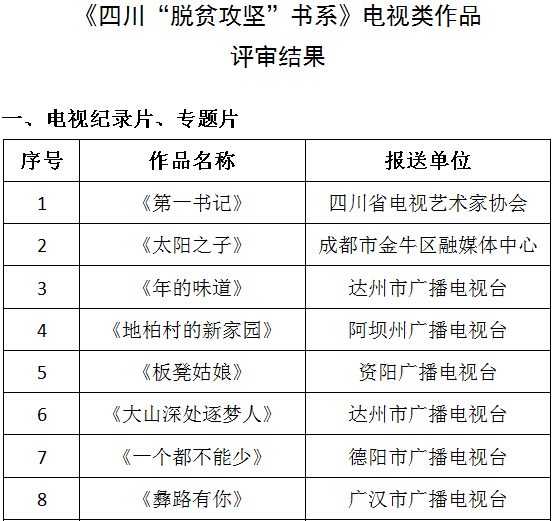 5月27日,《四川“脱贫攻坚”书系》电视类作品评审会在蓉举行。《四川“脱贫攻坚”书系》是由中共四川省委宣传部牵头组织的一项编纂工程。书系设计为综述卷、市州卷、新闻卷、文艺卷、影像卷等5卷。《四川“脱贫攻坚”书系》文艺卷(艺术篇)主要选编十八大以来四川省艺术界在脱贫攻坚工作中创作出的优秀作品。四川省文联负责文艺卷(艺术篇)的作品收集编纂工作,四川省视协负责电视类作品的征集及初评工作。