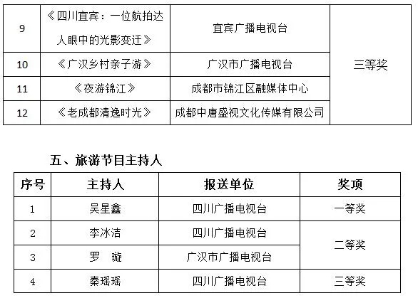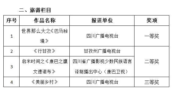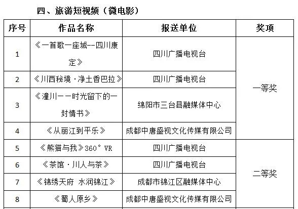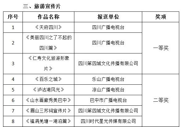 第十三届中国旅游电视周四川地区评选活动评审结果