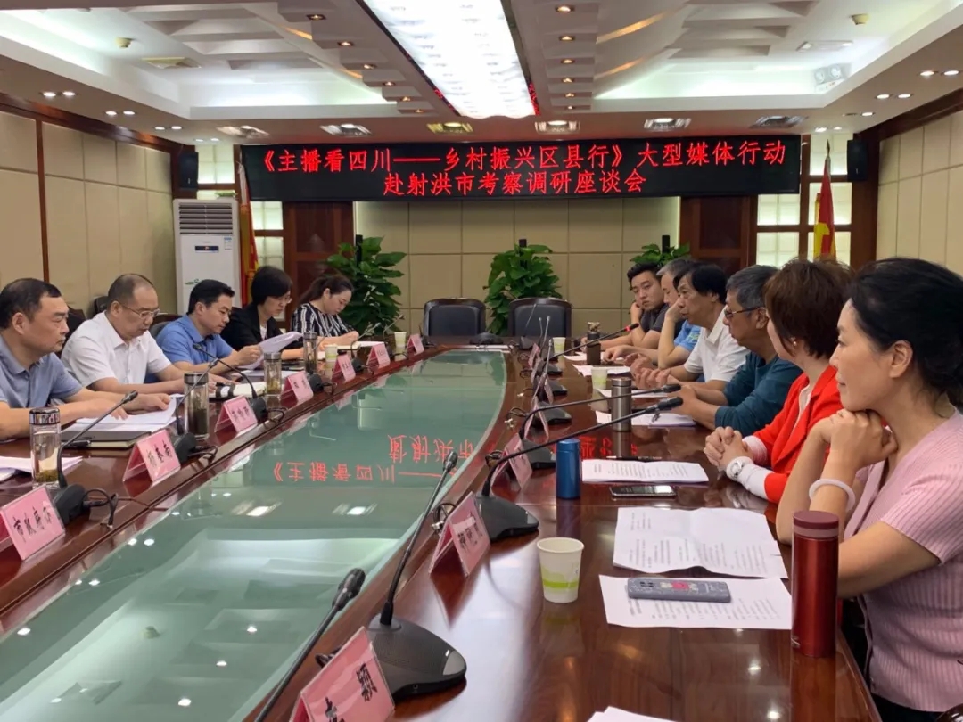 日前,四川省电视艺术家协会驻会副主席、秘书长寒露,四川省视协顾问、省视协纪录片专委会主任王海兵,四川省视协新文艺组织专委会主任张显达,四川省视协播音主持专委会副主任钟晓霞、周东等一行,赴射洪市考察调研,射洪市市委书记蒋喻新与省视协一行人召开座谈会,就《主播看四川——乡村振兴区县行》大型媒体行动颁奖活动的举办进行商议。射洪市政协主席、宣传部部长邓茂,副市长杨奎南、射洪市文广旅游局局长、融媒体中心主任等参加座谈。双方确定,将于今年11月18日在“一代文宗--陈子昂“故里射洪市举行《主播看四川——乡村振兴区县行》大型媒体行动颁奖活动。届时,将对四川省首届区县“十佳”主持人、“十佳”优秀作品、四川省十佳电视节目主持人进行表彰。