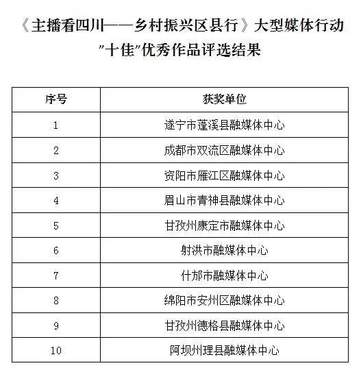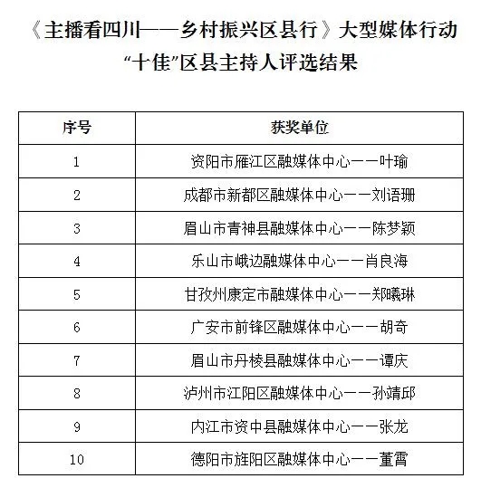 《主播看四川》大型媒体行动“十佳”优秀作品、区县“十佳”主持人出炉