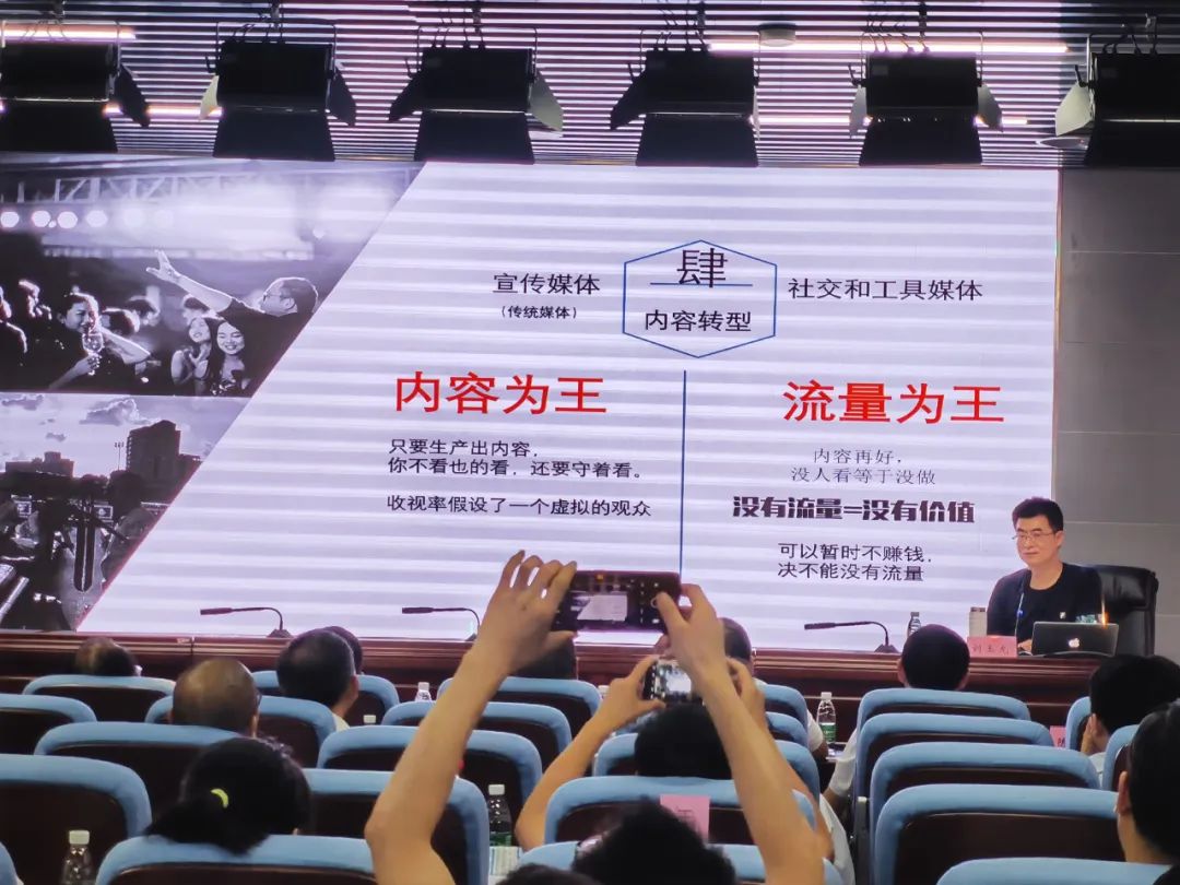 2022年6月29日,四川省视协“影视大讲堂”在广安市武胜县融媒体中心举办,省视协新媒体专委会副主任、省视协纪录片专委会委员刘玉龙以《短视频创作与融媒体建设》为题,深度解析了新媒体短视频的制作与传播,分享成功经验,总结运营方向,共谋发展之道。广安市、县级广播电视台40余名新闻工作者参加了本次讲座。