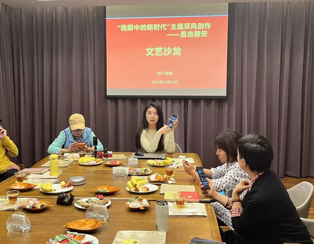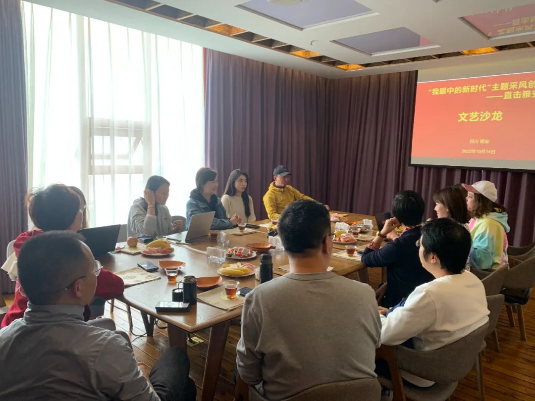 10月14日下午,雅安依旧处于区域管控中,“我眼中的新时代”四川省主题采风创作团第六组在酒店举办了一场别开生面的文艺沙龙。艺术家们不愿浪费被困在酒店中的时间,利用此次多艺术门类艺术家共同采风的活动特点,进行了一次评论、摄影、影视、美术等多种艺术门类碰撞的跨协会交流。